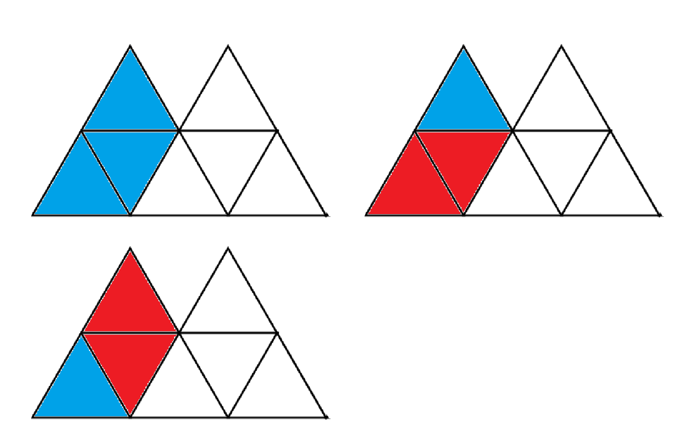 위에 삼각형이 있는 경우와 없는 경우가 똑같고, 현재 삼각형이 침범 당한 경우와 침범 당하지 않은 경우를 더한 경우의 수와 같음을 알 수 있다.