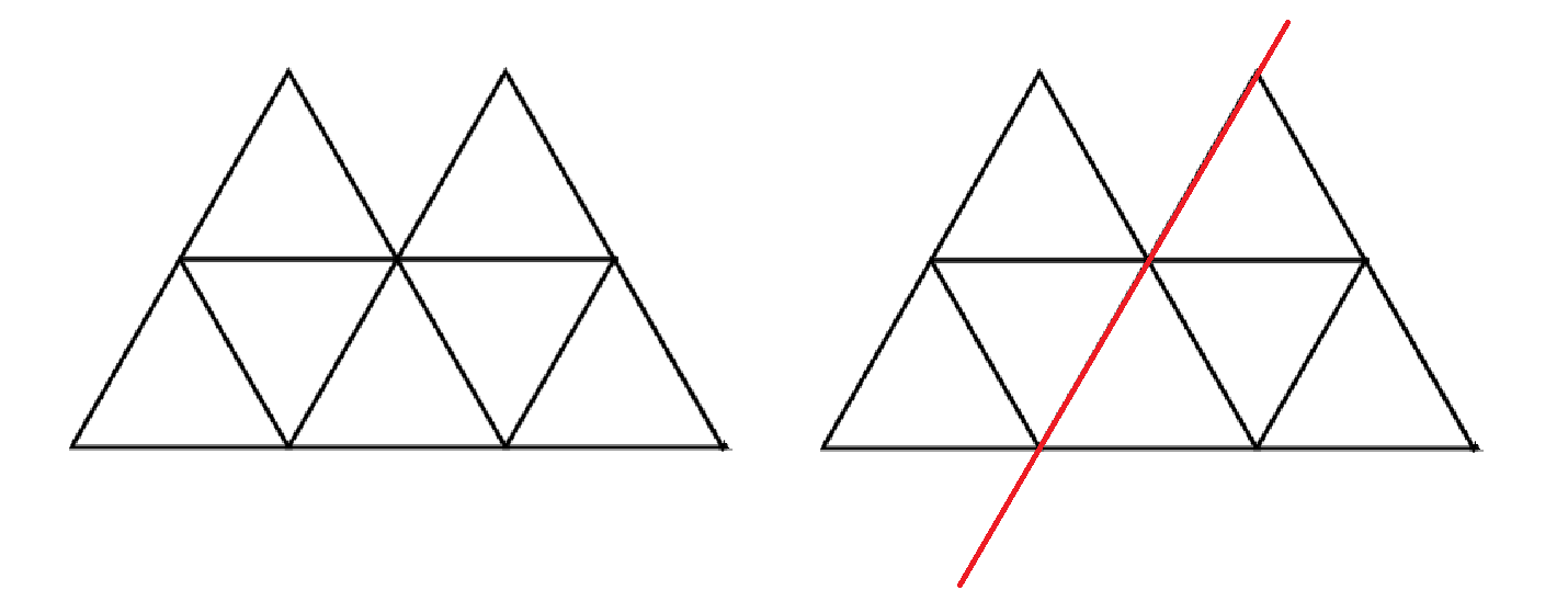 다음은 옆 삼각형을 침범했을 경우를 생각해보자 이 경우는 매우 쉽게 알 수 있다.