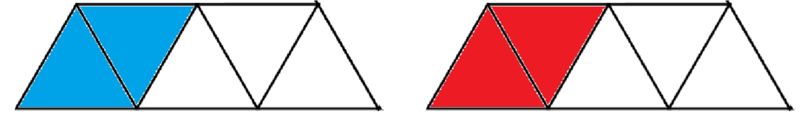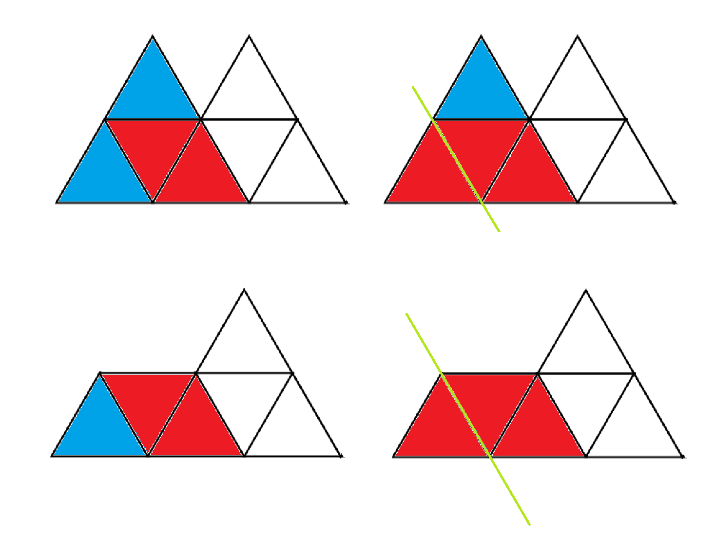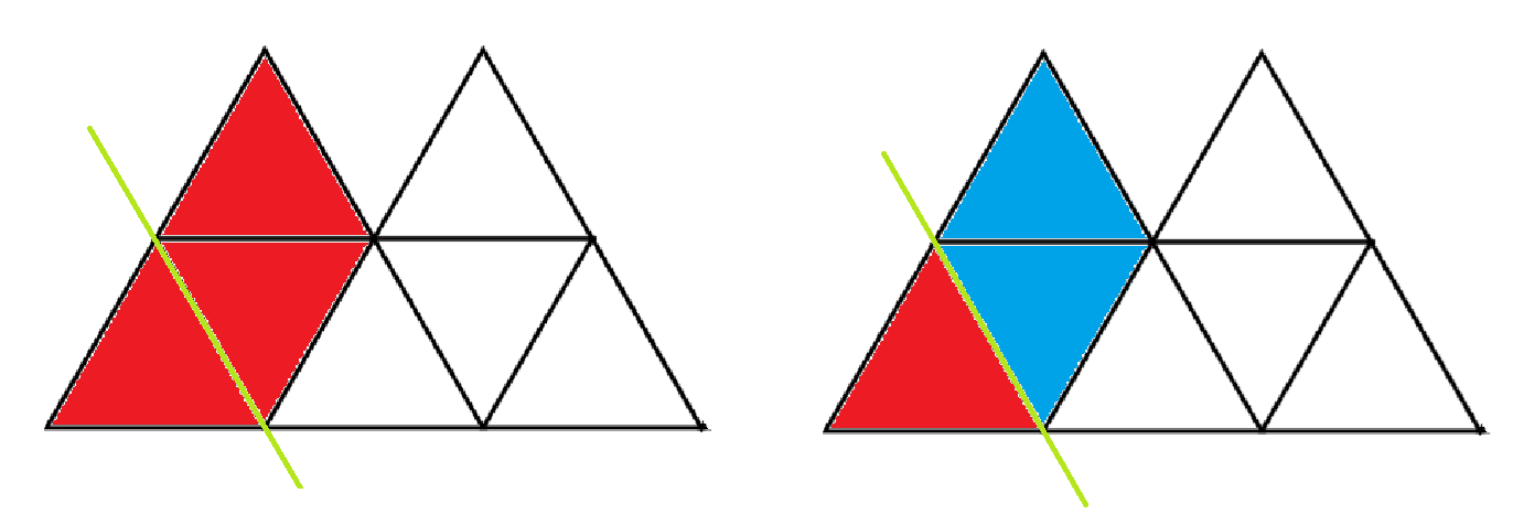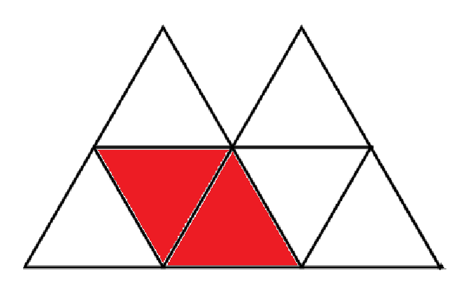 (여기서 빨간색으로 칠해진 삼각형은 2개로 이루어진 마름모형 타일, 파란색 삼각형은 그냥 한개의 삼각형 타일이다.)