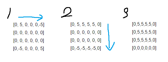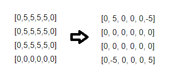 예를 들어 스킬이 [0,5,5,5,5,0]과 같이 데미지가 들어간다면, 이를 [0,5,0,0,0,-5]와 같이 표시할 수 있는 것이다.