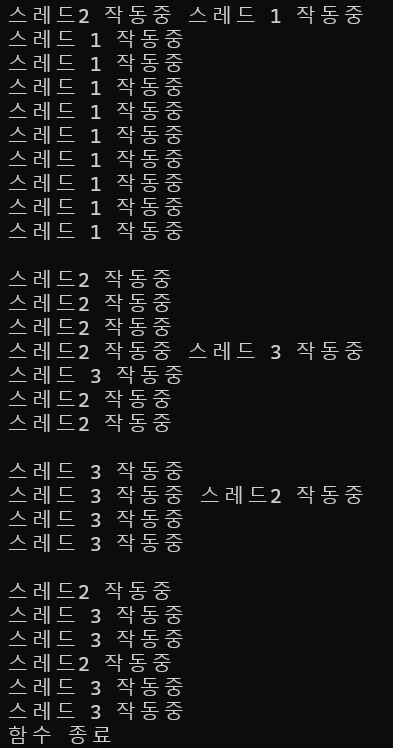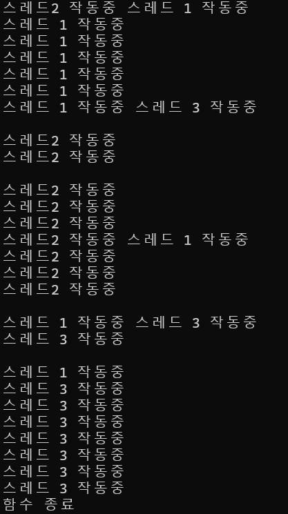 cout << "스레드 3 작동중" << endl;