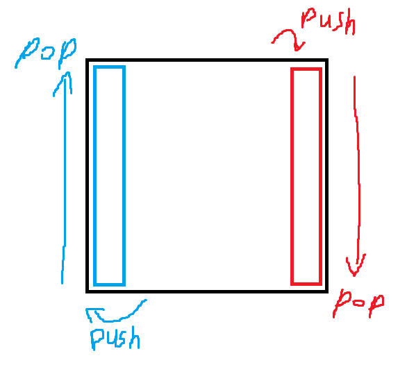 위와 아래의 경우 값을 단순히 2차원 deque의 처음과 끝에 push와 pop을 적절히 사용하면 되기 때문에 따로 분리하지 않아도 쉽게 해결할 수 있었다.