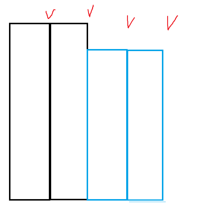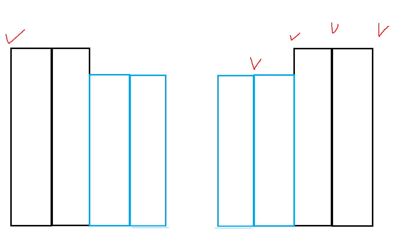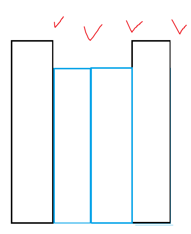 그러면 작은 빌딩사이에 큰 빌딩이 들어오지 못하므로 작은 빌딩은 붙어있어야 한다.