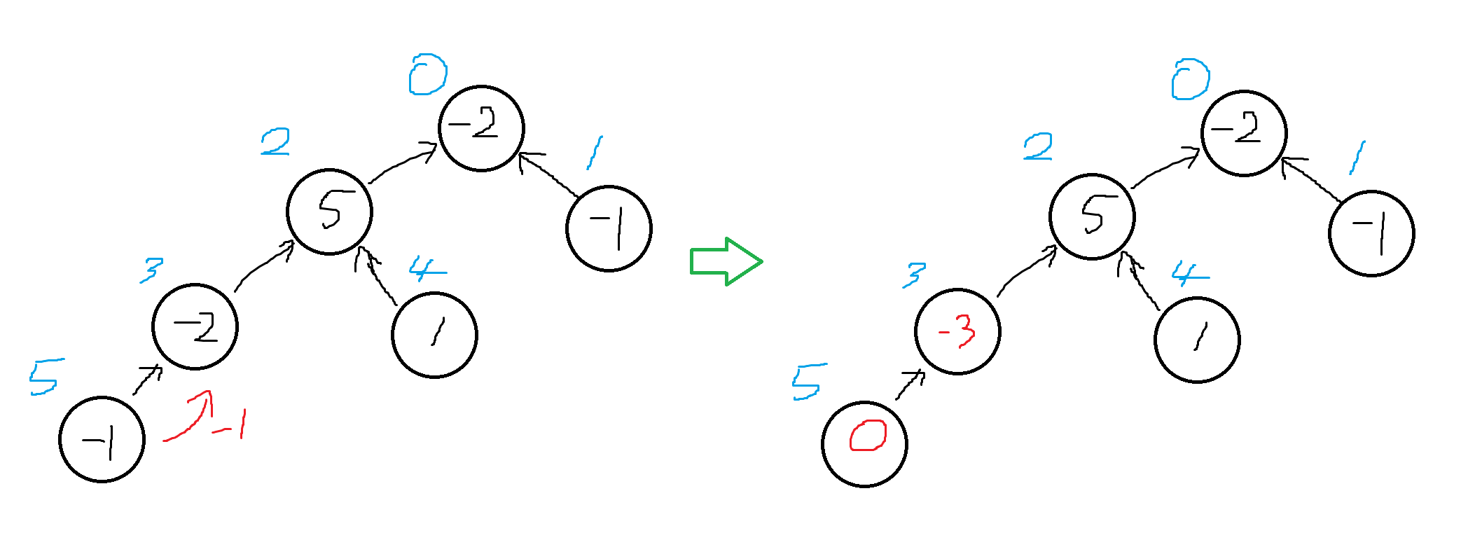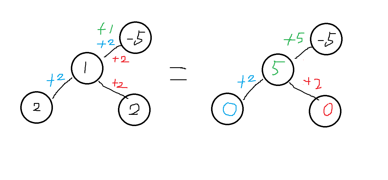 즉, 특정 노드를 최상단 노드로 하는 트리를 만들고, leaf노드부터 부모노드로 자신의 숫자를 이동하는 연산을 반복하면 모든 노드를 0으로 만드는데 걸리는 최소연산 횟수를 구할 수 있다.