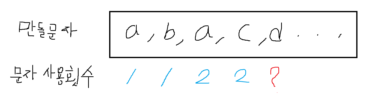 특정 문자가 주어지면 그 문자의 i번쨰 문자를 만드는데 단어가 사용되는 최소 횟수가 적혀있다.