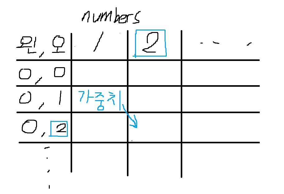 - 계산을 편하게 하기 위해 특정 숫자에서 특정 숫자로 옮기는데 필요한 가중치를 미리 계산한다.