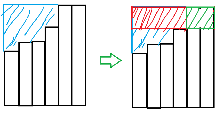 빨간 부분 = (두번재로 높은 층보다 높은 블럭 수) * (이전에 쌓은 블럭 높이 - 다음 층의 높이 차)*P
