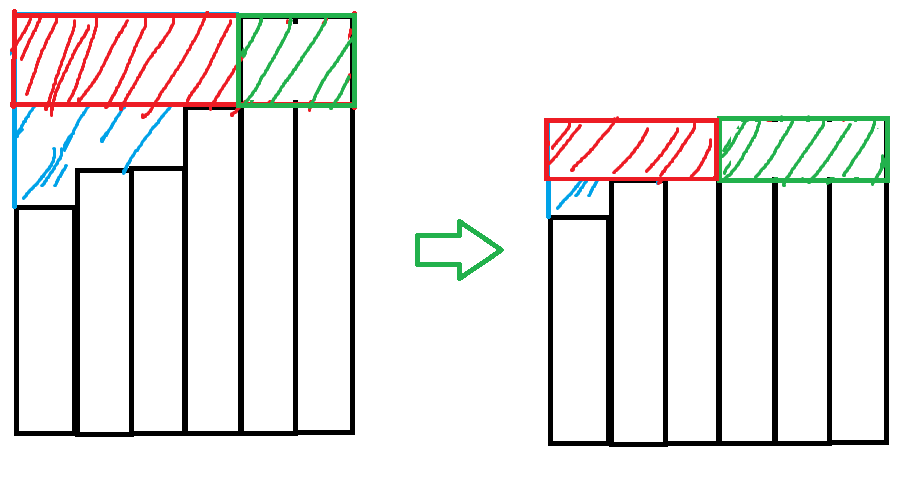 이때, 빨간 부분 만큼의 비용은 필요가 없어졌으므로 빼주고, 초록 부분은 블록을 제거해야하므로 비용에 더해준다.