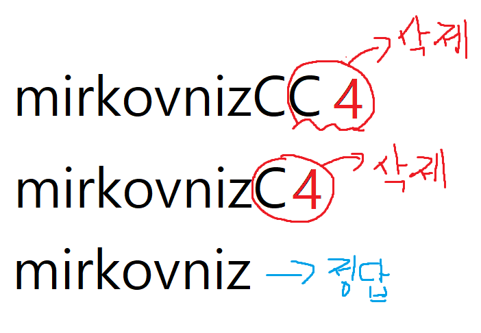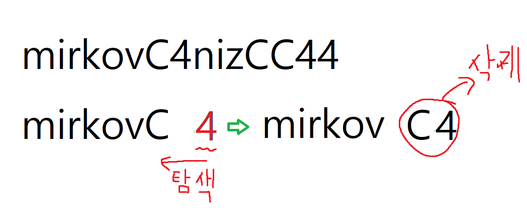 C4로 같았으므로 문자열을 삭제해 준다.