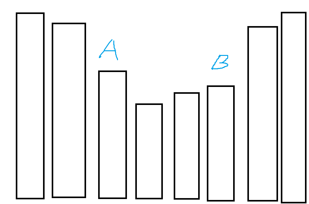 잘 생각해보면 A와 B의 사이가 아닌 곳에는 키가 큰 사람이 있어도 된다는 뜻이다.