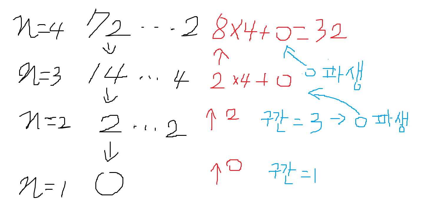 - n이 1 늘어날 때 마다 1의 총 개수가 4배씩 늘어난다.