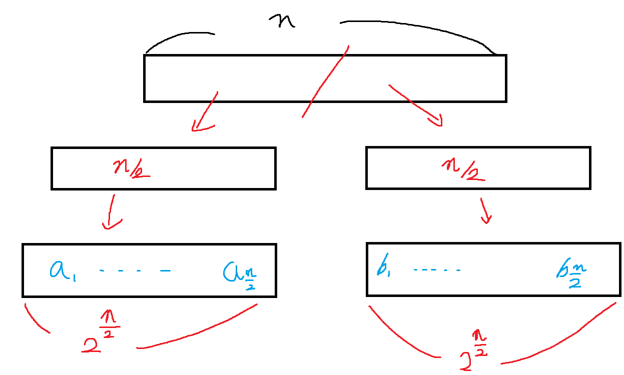여기서 Meet in the middle 이란 알고리즘을 이용하면 시간을 줄일 수 있다.