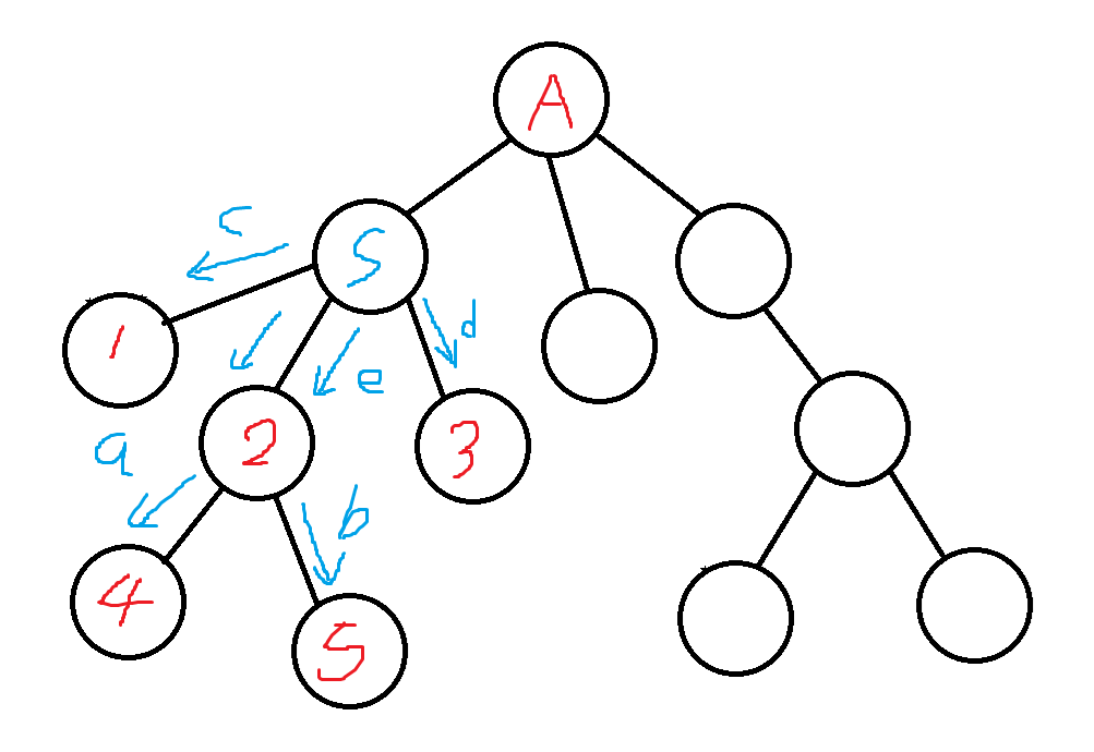 그러면 계산된 자식 노드의 거리인 (c, d, e+a) 중 긴 것을 2개 뽑아서 더하면 S를 중심으로 하는 가장 긴 경로의 계산이 끝난다.