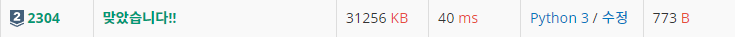 그래서 몇 번째 기둥이 있는지 파악하기 위해 정렬을 했고, 기둥의 높이 중 가장 큰 높이가 얼마인지 찾기 위해 max 함수를 사용했다.