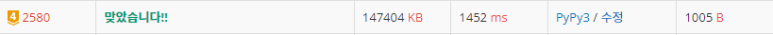 python3로는 시간초과가 나와 pypy로 풀었다.