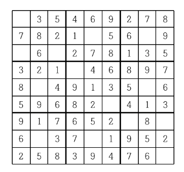 스도쿠 판을 채우는 방법이 여럿인 경우는 그 중 하나만을 출력한다.