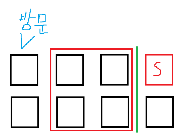 그러므로 왼쪽을 방문하는 경우에 S의 아래를 무조건 방문한다는는 점을 고려해 방문할지를 판단 하면 된다.