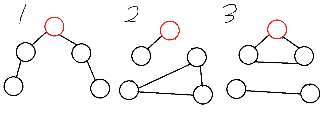 3번의 경우는 빨간 노드를 기준으로 탐색해 나가면 사이클이 있음을 알 수 있다.