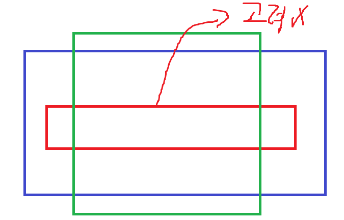 하지만 x축이 짧아도 y축이 파란색 사각형보다 긴 초록색 사각형을 고려를 해야한다.