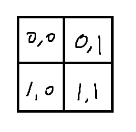 위 그림처럼 정사각형 모양의 테트리스 조각인 경우 (0, 0) 위치를 기준으로 다른 조각들은 (0, 1), (1, 0), (1, 1)에 위치하게 된다.