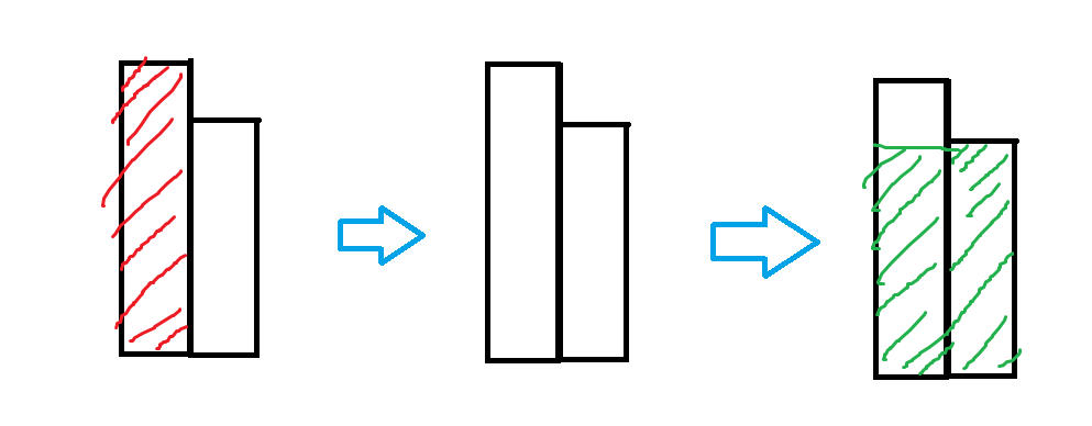 위의 두 경우를 이용하면, 이전의 높이보다 더 높은 막대가 나타나면 상관없지만, 높이가 더 낮은 사각형이 나타난다면 더이상 저장되어 있던 높이를 가진 직사각형을 그릴 수 없다는 사실을 알 수 있다.