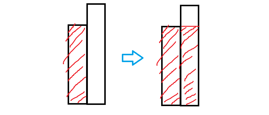 2. d막대의 높이가 c와 같다면, d의 높이를 가진 직사각형은 c부터 그릴 수 있으므로, 높이와 시작점을 그대로 둔다.